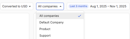 One of the benefits of using multiple companies is the ability to view reports either as a combined, holistic view, or filtered by individual companies. This allows you to focus your analysis on a specific part of your business that interests you at a given time