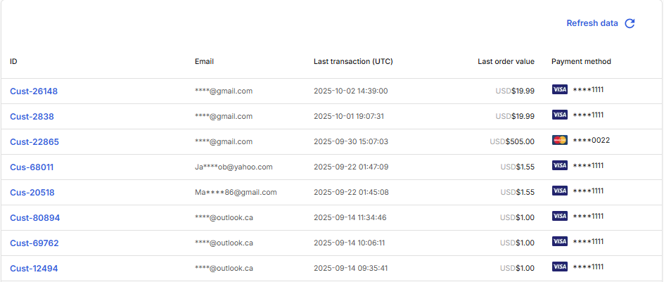 - Search box: Enter a Customer ID or Email address to find specific customers quickly.