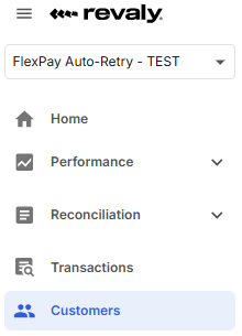 The Customers page displays all customers associated with your account through transactions processed in Revaly.