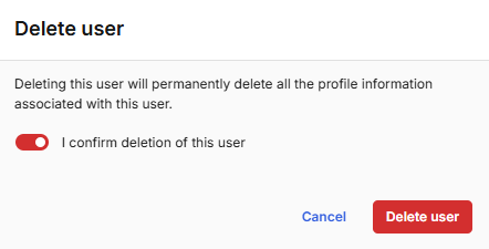 If you selected Delete, , in the confirmation screen, toggle the option "I confirm deletion of this user", then click Delete user.