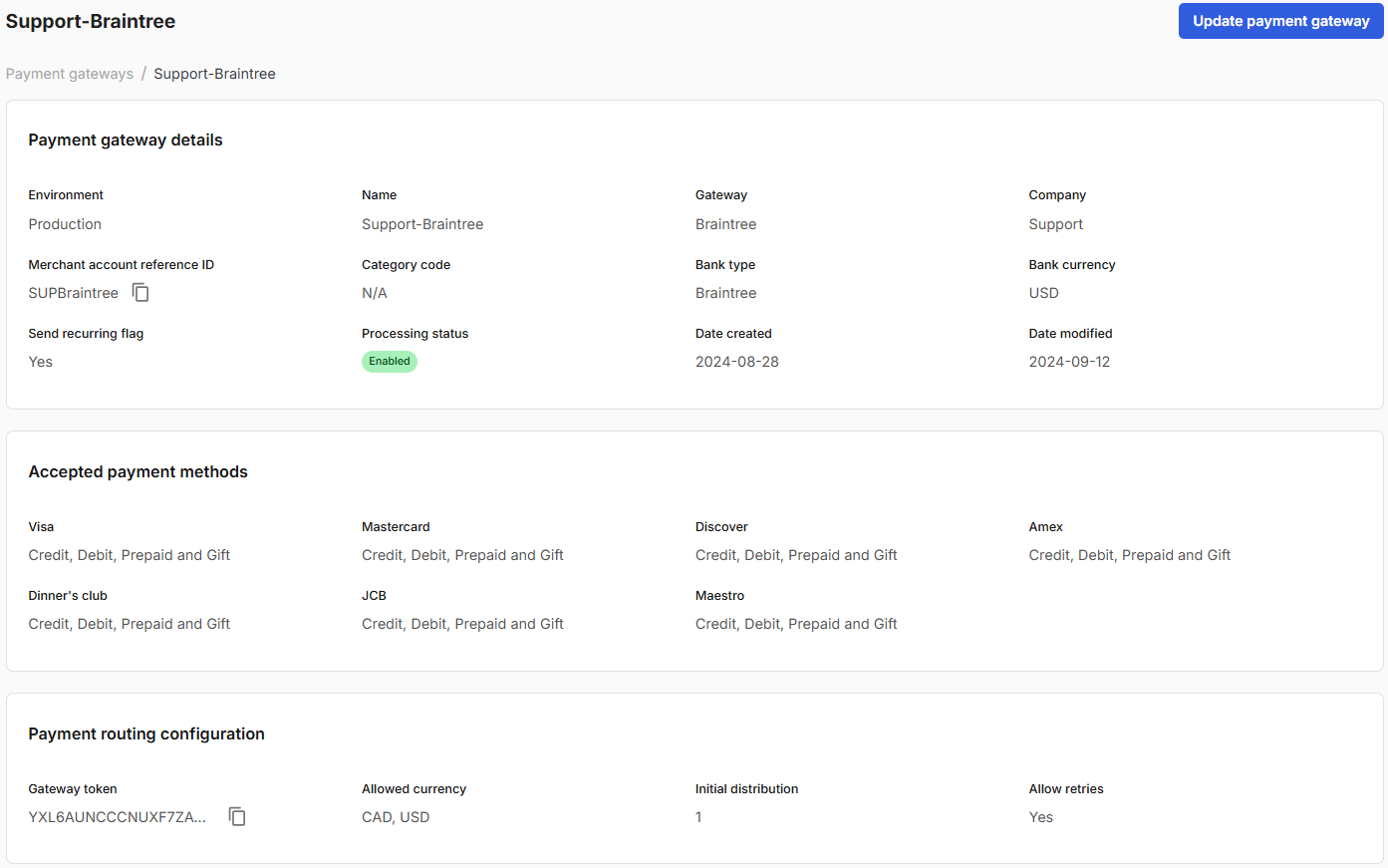 - Merchant account reference ID: An identifier that can be used to route transactions to this specific gateway.
